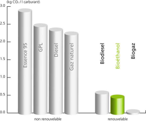 Pour résumer, le fait que la combustion de l’éthanol émette du gaz carbonique (CO2) est compensée par l’absorption préalable de CO2 par les plantes qui le composent.
